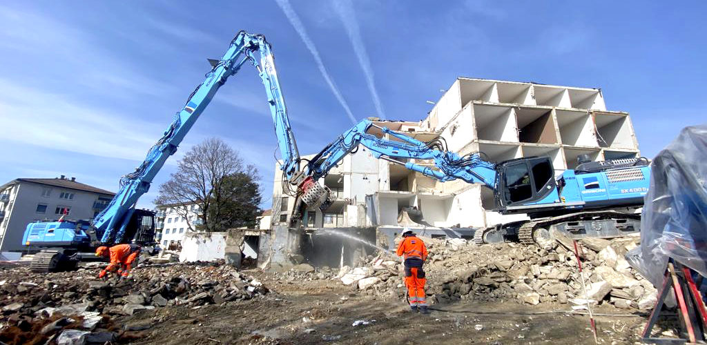 Ce chantier sollicite une équipe de 8 collaborateurs pour l’étape de curage et de désamiantage, ainsi que 6 machinistes pour la phase de démolition lourde à la pelle mécanique.