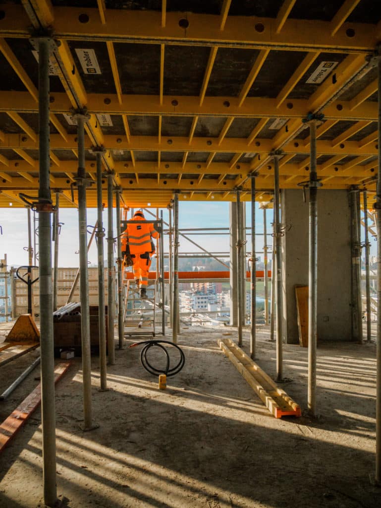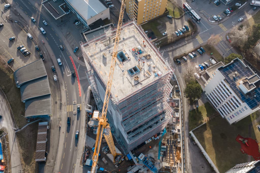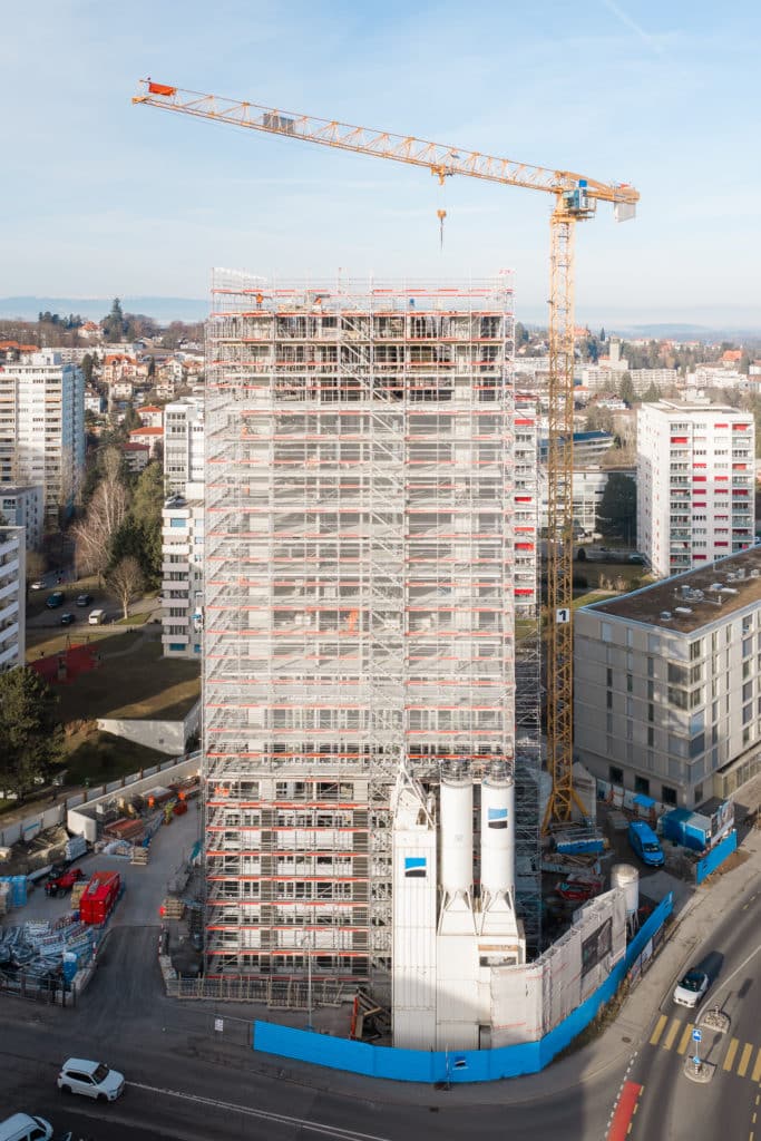 Démarré en février 2024, le gros œuvre touche aujourd’hui à sa fin, 24 mois après le premier coup de pelle. Les murs du rez-de-chaussée au 20ᵉ étage sont en place pour supporter la future charpente métallique.