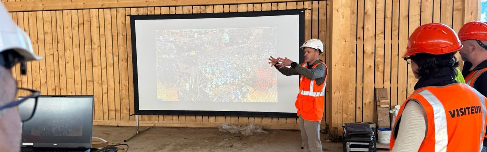Les participant·e·s ont notamment assisté à une présentation de l’Inspection du travail du canton de Fribourg, avant de visiter le centre logistique, l’atelier mécanique et le chantier du futur pôle de production bois, où le concept BIM a été présenté.