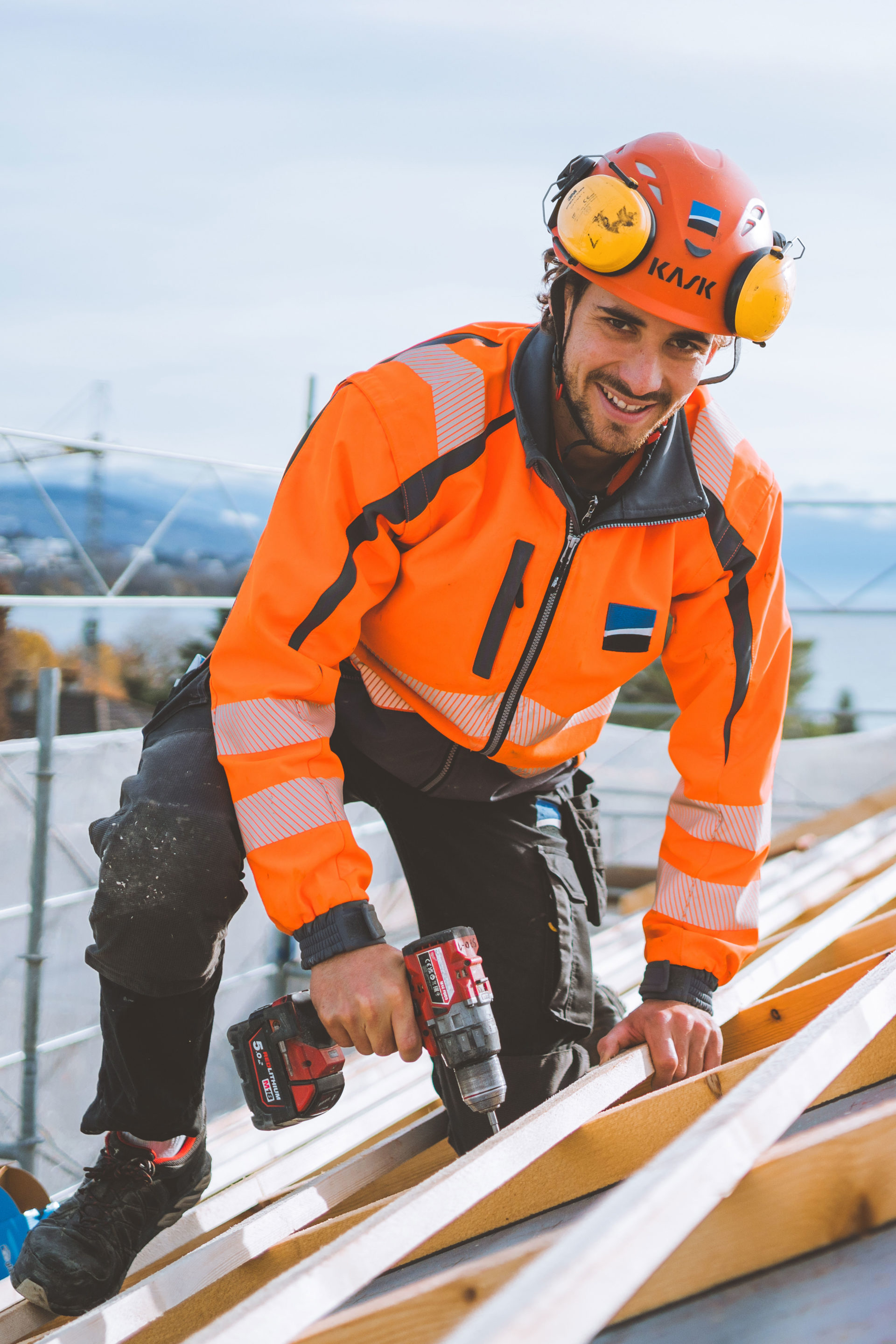 Aujourd’hui, nous allons à la rencontre de Léo, charpentier au sein de la société Lanthmann Constructions bois SA, filiale du Groupe Grisoni.